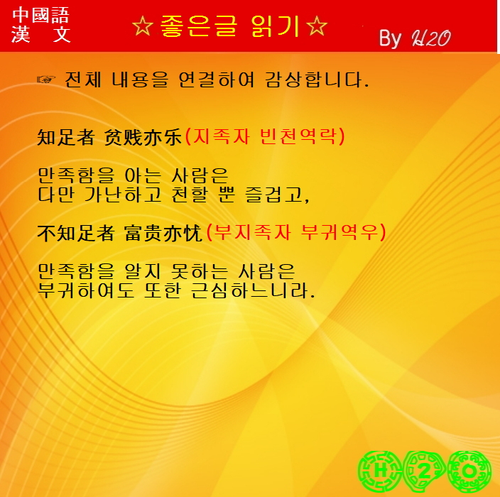만족함을 아는 사람은 다만 가난하고 천할 뿐 즐겁고,