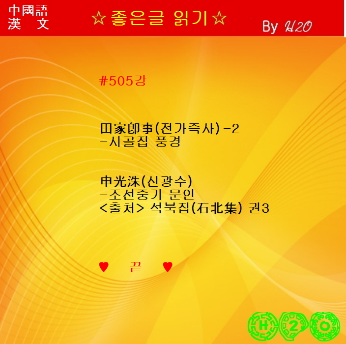 #505강 한시(漢詩)로 배우는 漢文과 중국어 ★田家卽事 - 申光洙-2