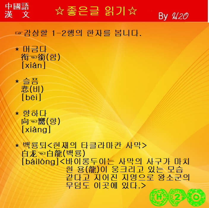 #526강 한시(漢詩)로 배우는 漢文과 중국어 ★ 昭君怨三首2 - 東方虯-1