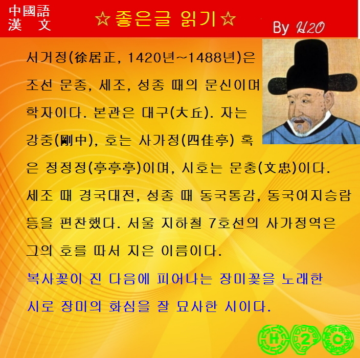 #555강 한시(漢詩)로 배우는 漢文과 중국어 ★黃薔薇 - 徐居正-2