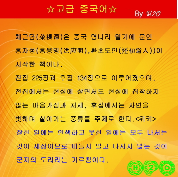 | 명문장으로 배우는 漢文과 중국어 -615 菜根譚 71章-2 (0) | 2020.10.06 |