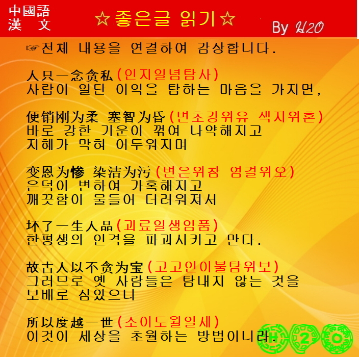 좋은 글을 한문으로 읽어 마음과 정신의 풍요로움을...