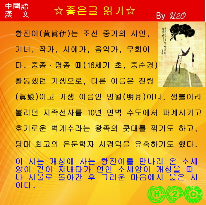 #677강 한시(漢詩)로 배우는 漢文과 중국어 ★相思夢 - 黃眞伊-1