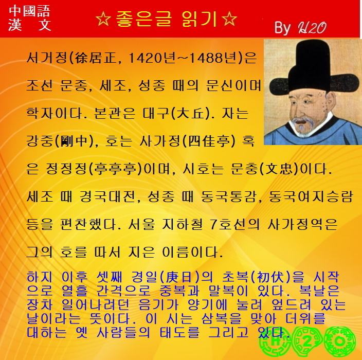 #768강 한시(漢詩)로 배우는 漢文과 중국어 ★三伏 三首基一 - 徐居正-1