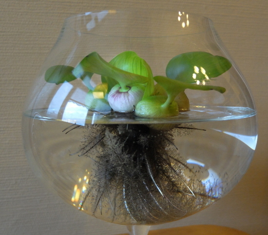 물에 부레옥잠을 심었다