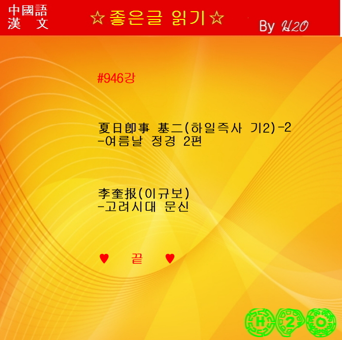 #946강 한시(漢詩)로 배우는 漢文과 중국어 ★夏日卽事 基二 - 李奎報(-2