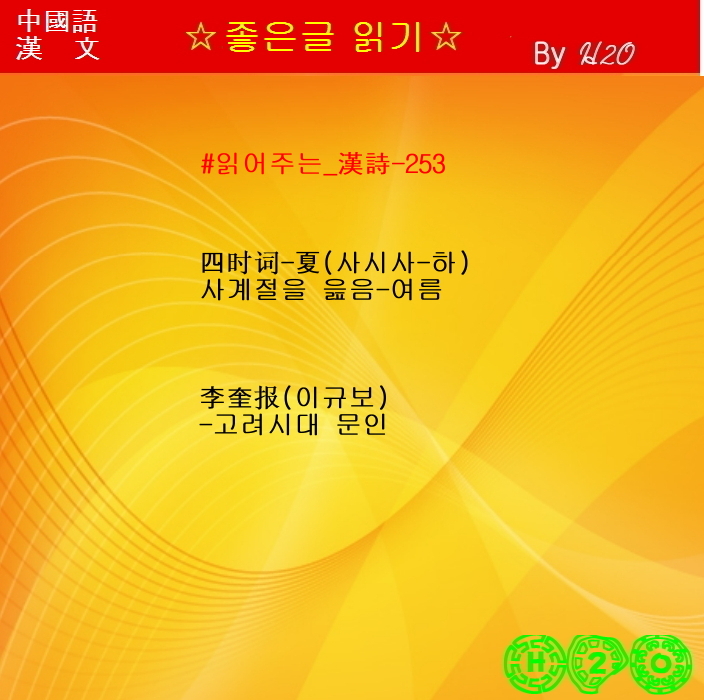 | 한시(漢詩)로 배우는 漢文과 중국어 - 960 ★四時詞 夏 - 李奎報-2 (0) | 2022.07.15 |