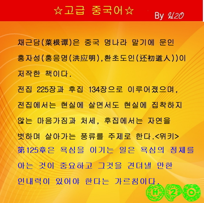 | 명문장으로 배우는 漢文과 중국어 -1029 菜根譚 125章-1 (0) | 2022.11.24 |