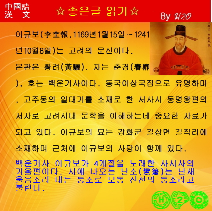 ☆ 한시감상 ★四時詞 冬 - 李奎報