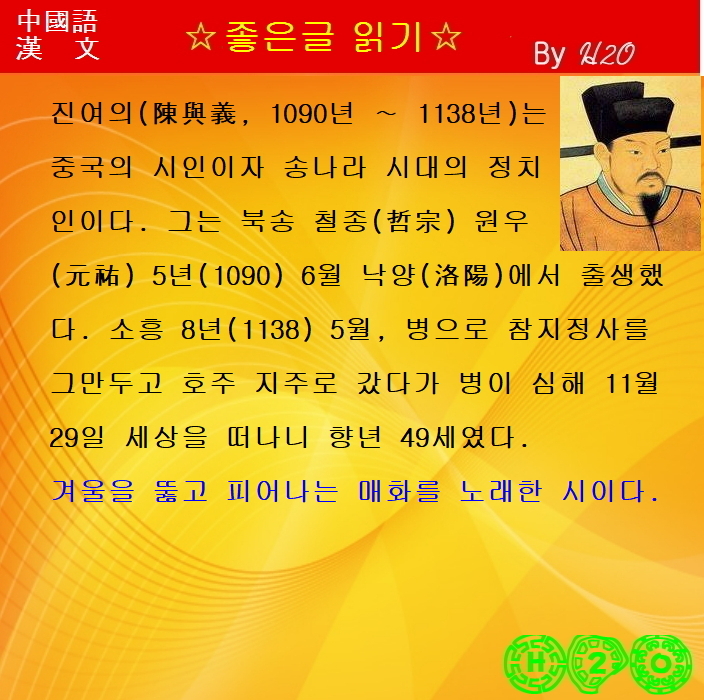 #1073강 한시(漢詩)로 배우는 漢文과 중국어 ★梅花 - 陳與義-2