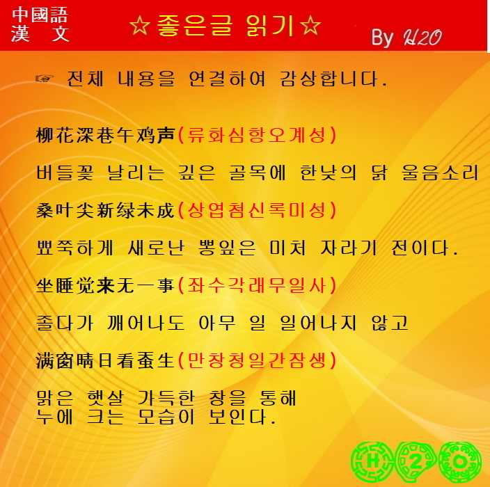 | #읽어주는_漢詩-288 ★春日田園雜興 其一 - 范成大 (2) | 2023.03.18 |
