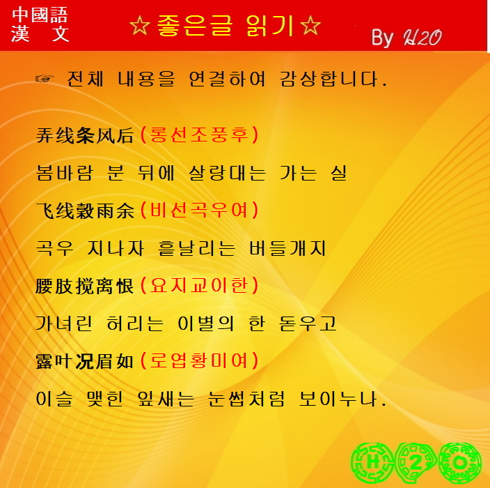 #1104강 한시(漢詩)로 배우는 漢文과 중국어 ★門前楊柳 - 金宗直-2