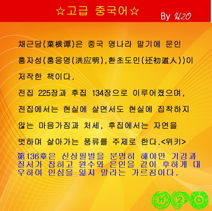 | 명문장으로 배우는 漢文과 중국어 -1105 菜根譚 136章-1 (0) | 2023.04.24 |