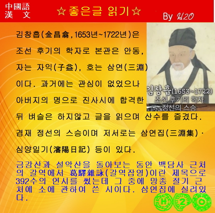 | #읽어주는_漢詩-301 ★葛驛雜詠 詠牛 - 金昌翕 (0) | 2023.06.03 |