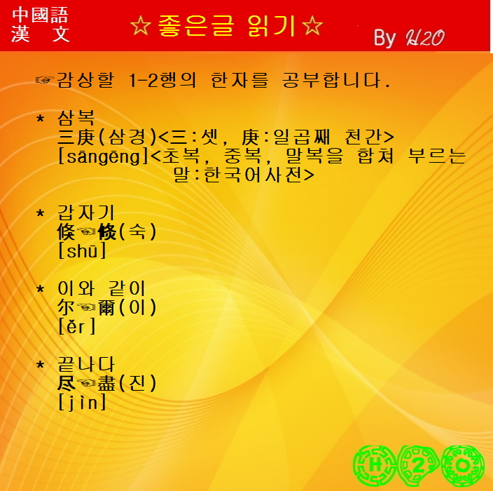 좋은 글을 한문으로 읽어 마음과 정신의 풍요로움을....