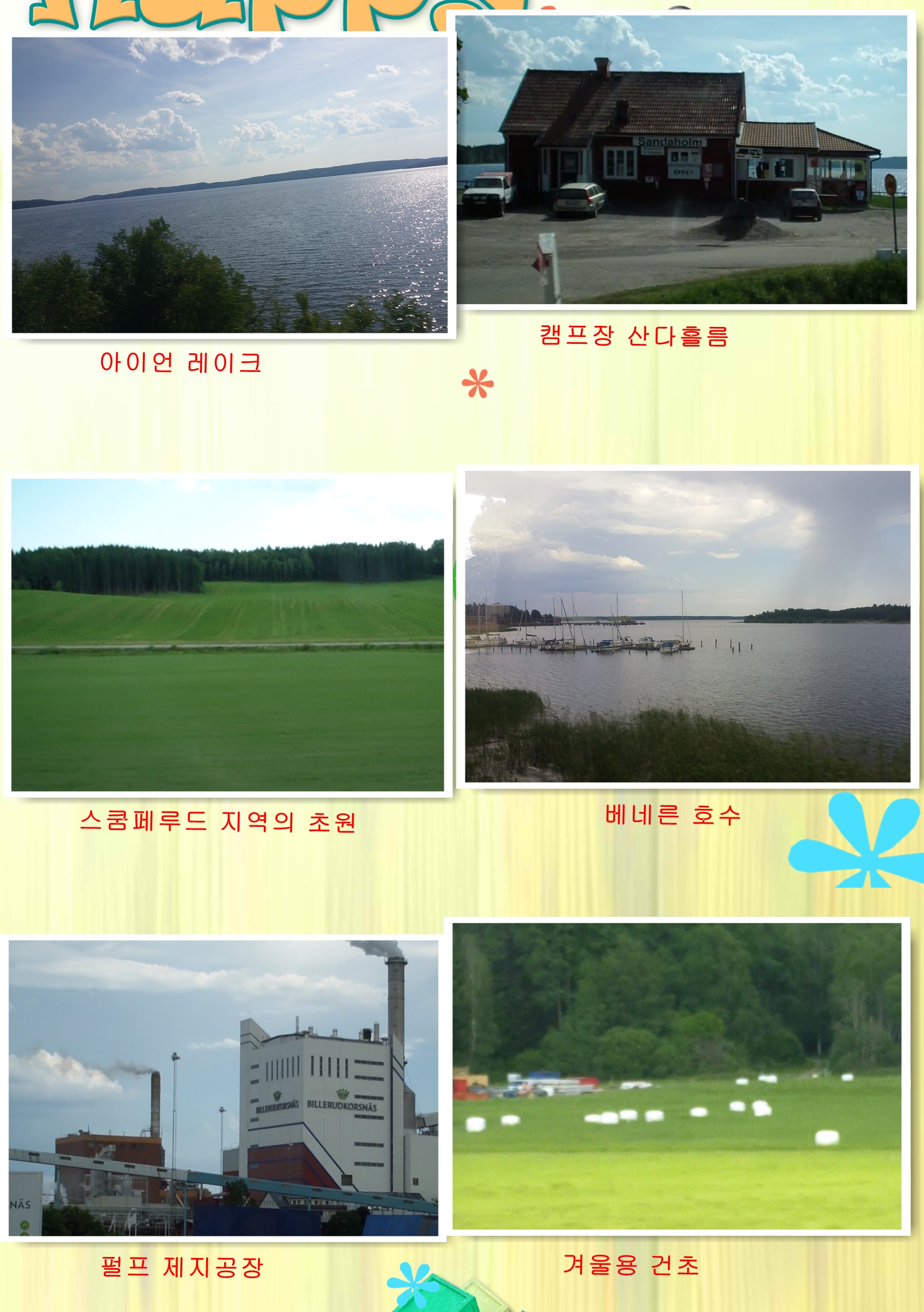 스웨덴의 국경 마을을 지나면서 가이드는 버스 비디오에 바이킹에 관한 영상을 틀어 놓았다. 영상을 보면서 가다보니 아이언 레이크(Järnsjön)라는 아주 넓은 호수를 지난다. Värmland 의 Årjäng 자치구 에 있는 호수인데 호수의 깊이는 64.2m, 면적은 19.1평방킬로미터로 바다같이 보이는 호수이다. 호수 주변에 캠핑장이 많은데 캠프장 산다홀름(Sandaholm Restaurang & Camping)을 지난다.