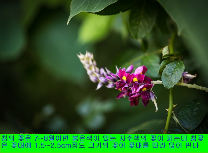 주변의 칡넝쿨 속에서 칡꽃을 손으로 훑어