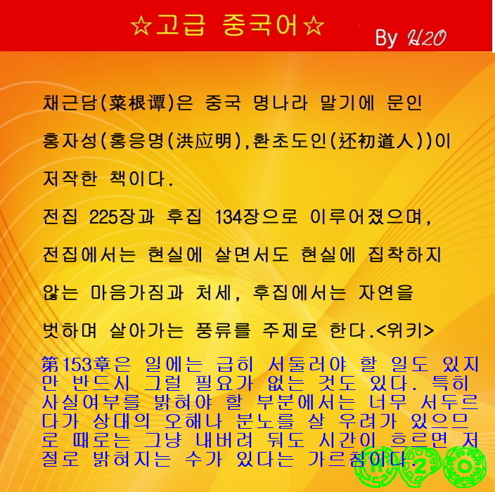 #1227강 명문장으로 배우는 漢文과 중국어 - 菜根譚 153章-2