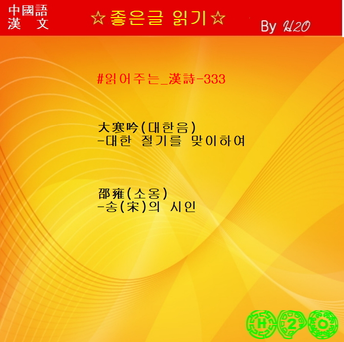 | 한시(漢詩)로 배우는 漢文과 중국어 - 1242 ★大寒吟 - 邵雍 - 1 (0) | 2024.01.18 |