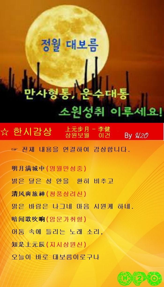 | 한시(漢詩)로 배우는 漢文과 중국어 - 1259 ★上元步月 - 李健 - 2 (0) | 2024.02.23 |
