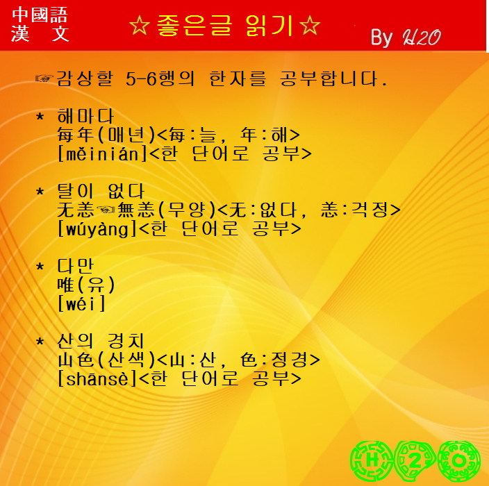 每年無恙唯山色 (매년무양유산색)