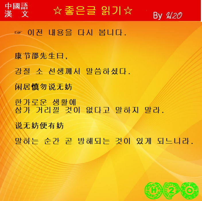 | #읽어주는_명심보감-158 ★省心篇 上 - 第50章 (0) | 2024.03.23 |
