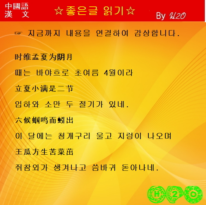 | 한시(漢詩)로 배우는 漢文과 중국어 - 1295 ★農家十二月俗詩 4月令 - 金逈洙 - 1 (0) | 2024.05.02 |