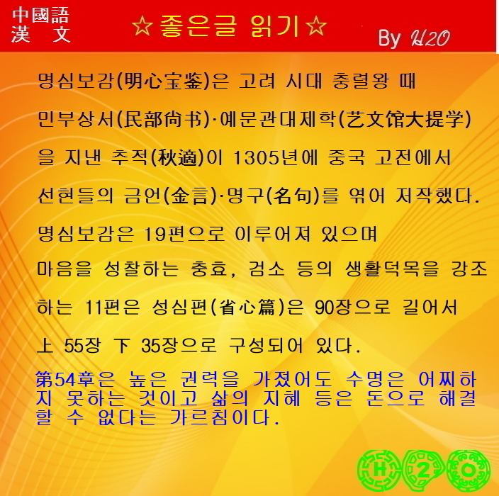 #1301강 명문장으로 배우는 漢文과 중국어 - 明心寶鑑 11.省心篇 上 54章