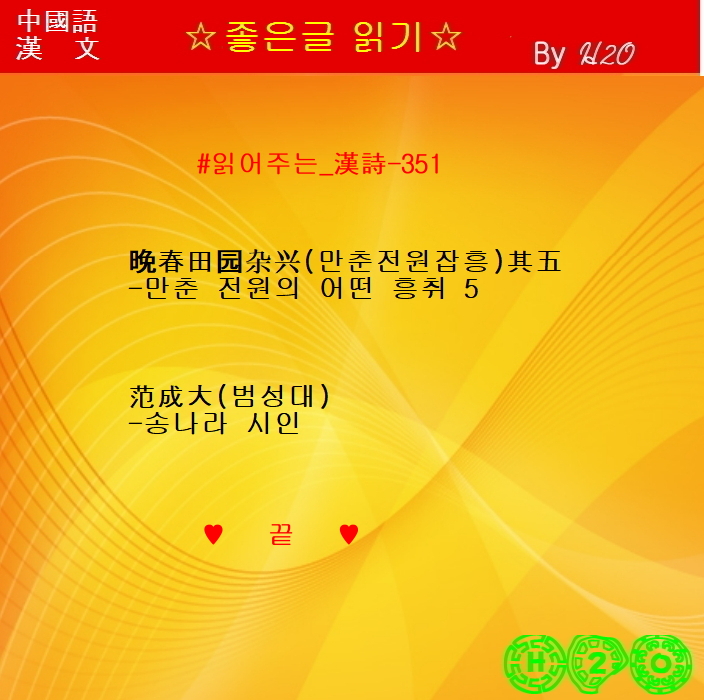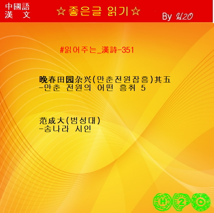 ☆ 한시감상 ★晩春田園雜興 其五 - 范成大