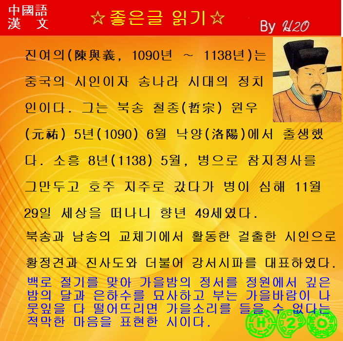 #1364강 한시(漢詩)로 배우는 漢文과 중국어 ★秋夜 - 陳與義 - 1