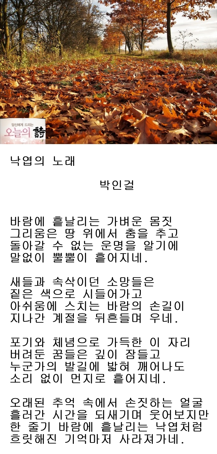 | 애강나무 그리움 - 박인걸 (1) | 2024.11.18 |