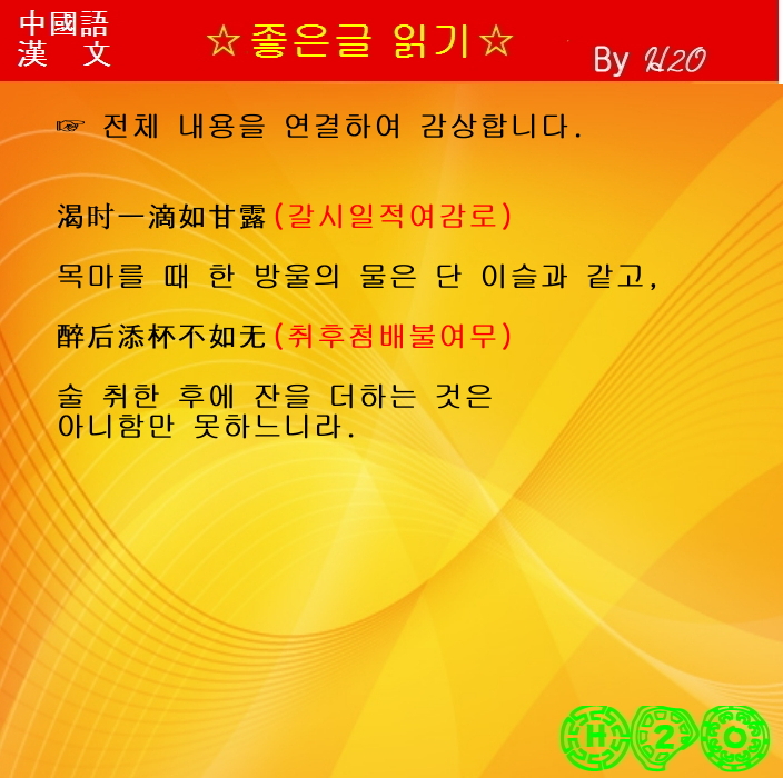 渴時一滴如甘露(갈시일적여감로)