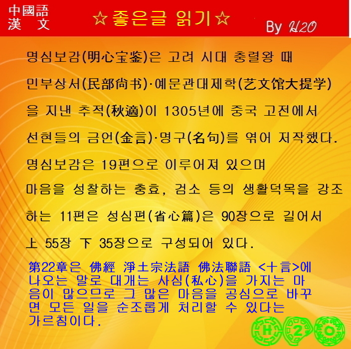 | 명문장으로 배우는 漢文과 중국어-1475 明心寶鑑 11.省心篇 下 22章-2 (2) | 2025.04.01 |
