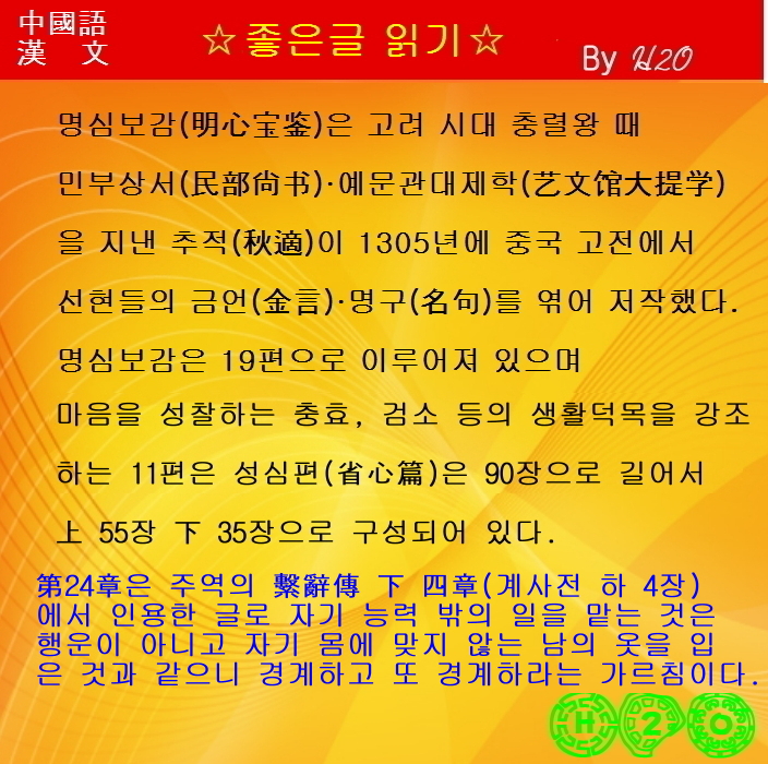 #1490강 명문장으로 배우는 漢文과 중국어 - 明心寶鑑 11.省心篇 下 24章-1