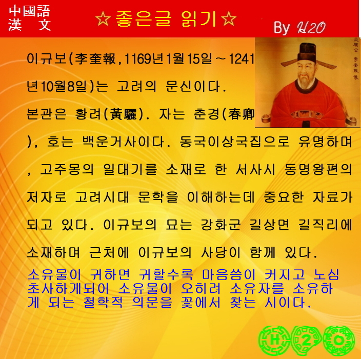 #1493강 한시(漢詩)로 배우는 漢文과 중국어 ★種花 - 李奎報 - 2