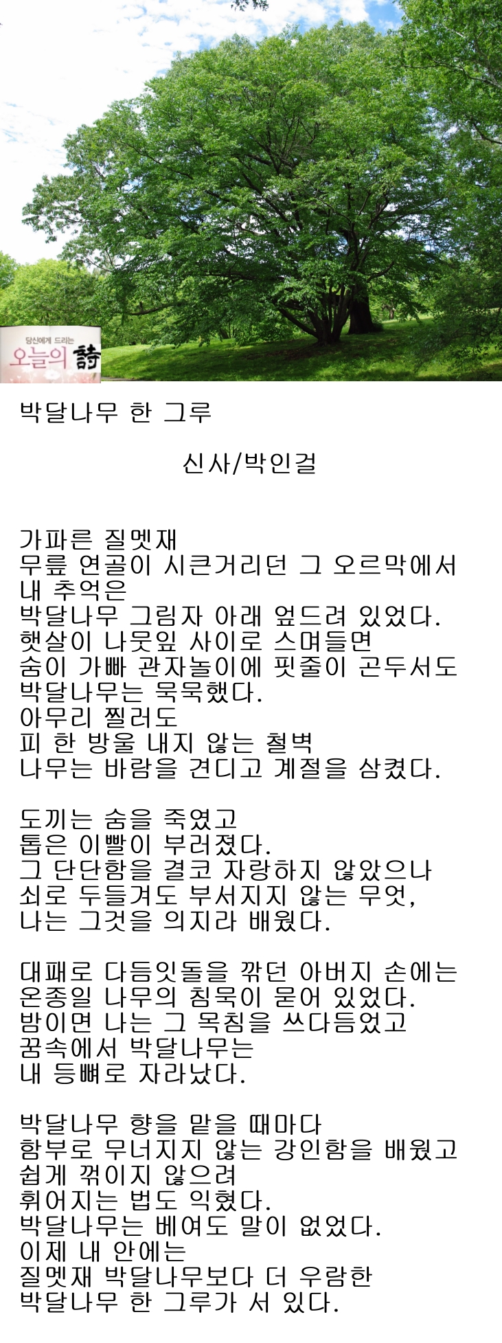 꿈속에서 박달나무는 내 등뼈로 자라났다.