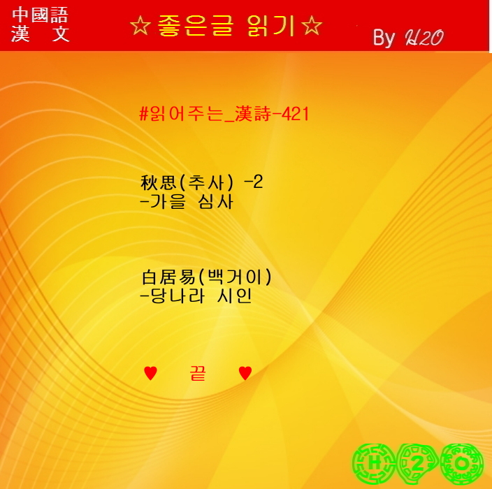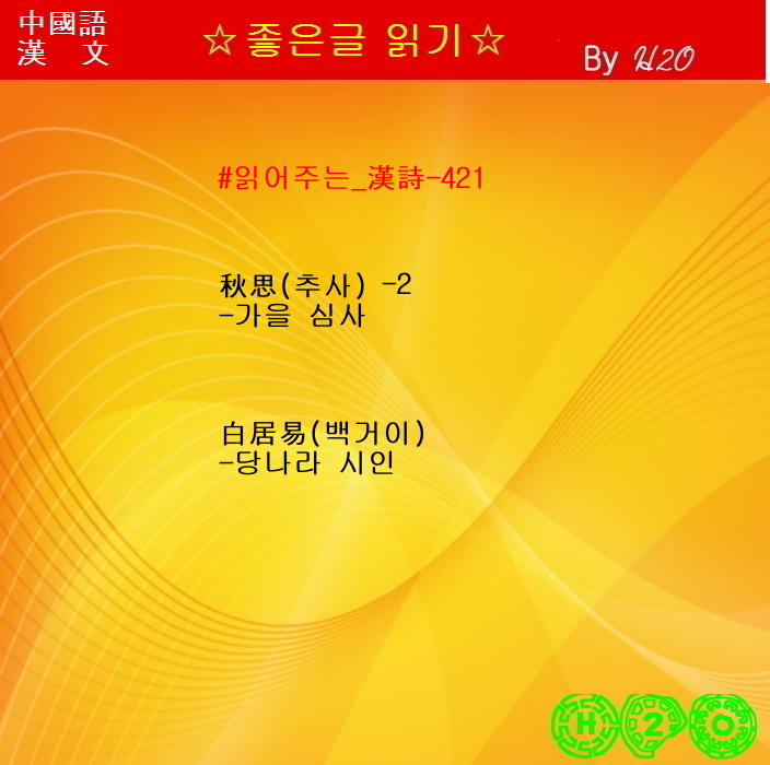 | 한시(漢詩)로 배우는 漢文과 중국어 - 1563 ★秋思 - 白居易 - 4 (2) | 2025.09.19 |