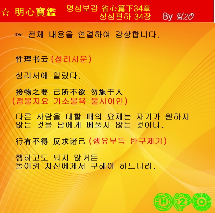 ▶反求諸己: 儒家에 관한 책에서 상당히 많이 나오는 문구로 거의 관용구가 되다시피한 말이다.