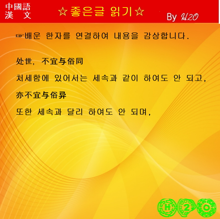 處世,不宜與俗同 (처세,불의여속동)