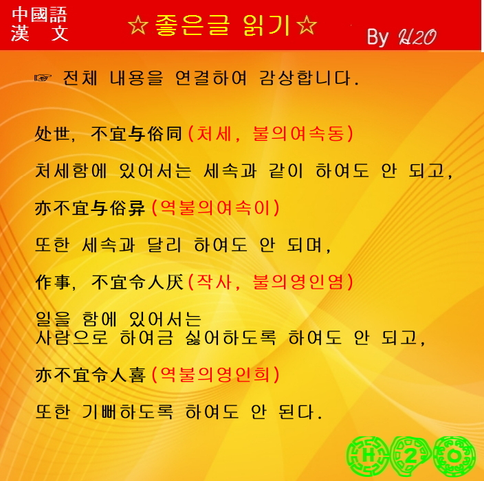 處世,不宜與俗同 (처세,불의여속동)
