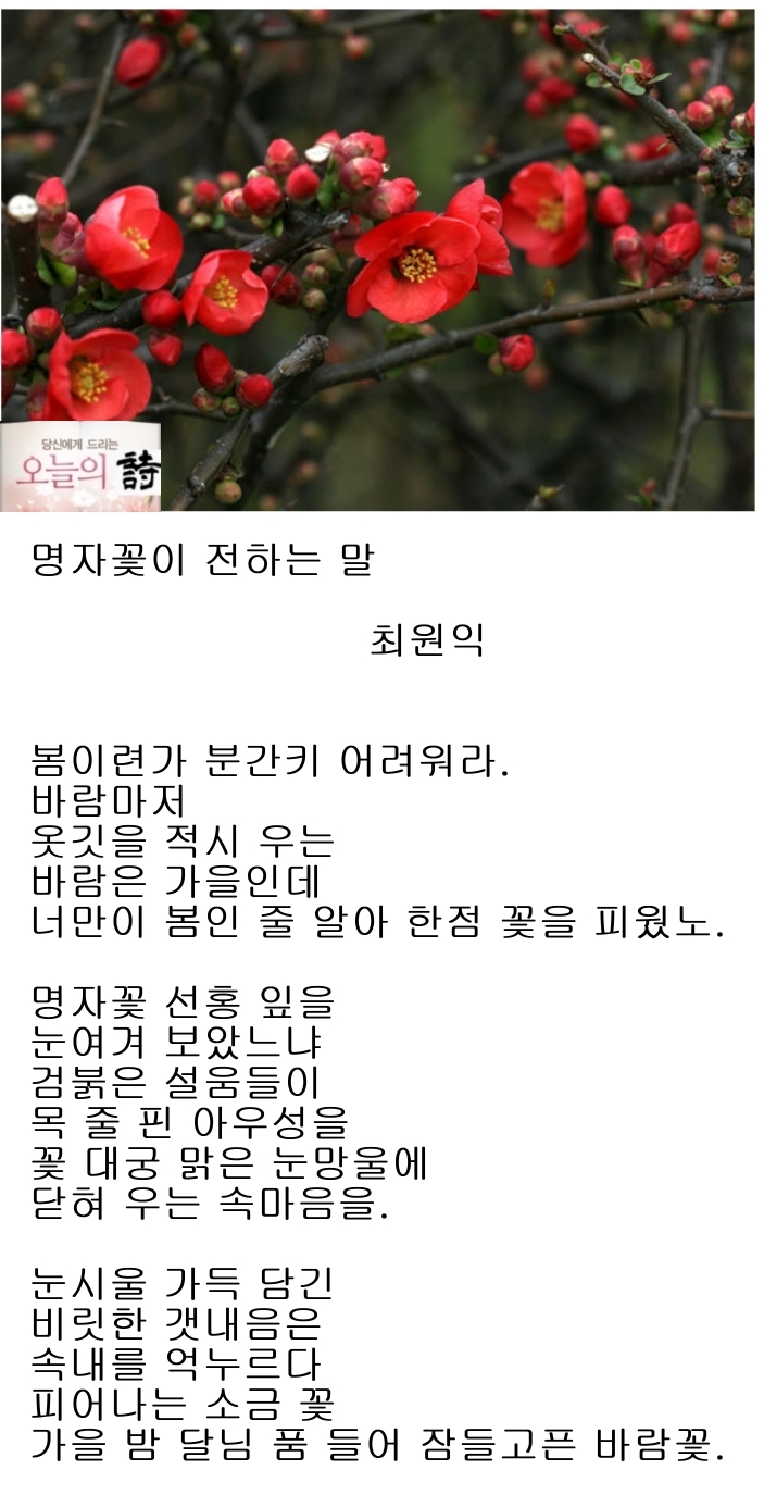 너만이 봄인 줄 알아 한점 꽃을 피웠노.