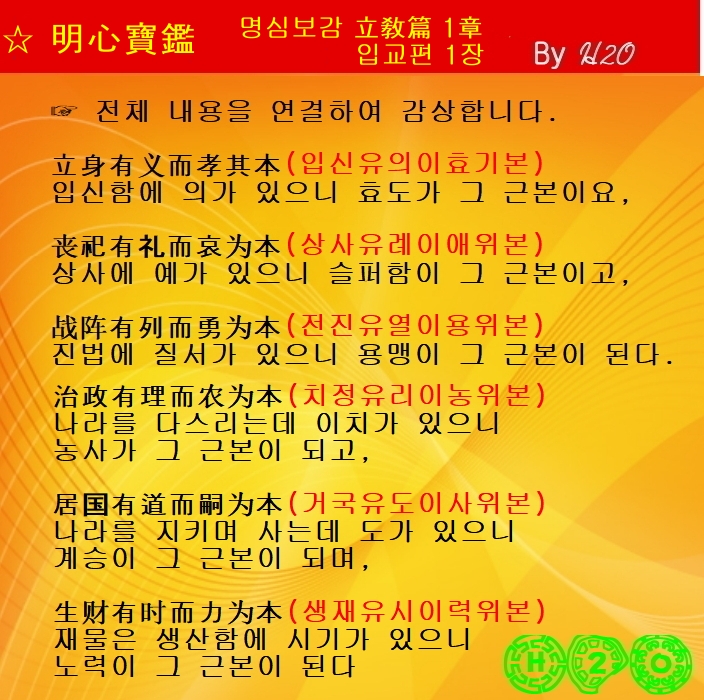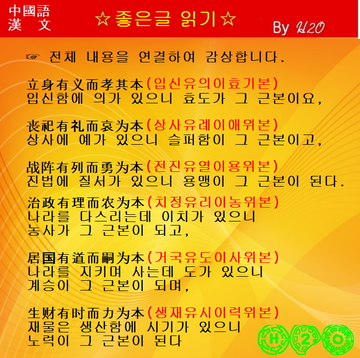 立身有義而孝其本 (립신유의이효기본)