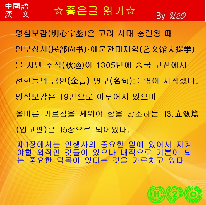 | 명문장으로 배우는 漢文과 중국어-1579 明心寶鑑 12.立敎篇 - 第1章-1 (0) | 2025.10.20 |