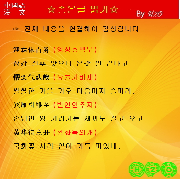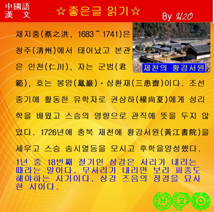 #1582강 한시(漢詩)로 배우는 漢文과 중국어 ★霜降 - 蔡之洪 - 2