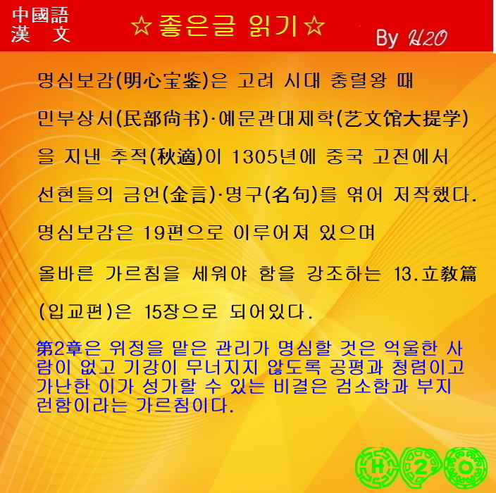 | 명문장으로 배우는 漢文과 중국어-1587 明心寶鑑 12.立敎篇 - 第2章-1 (0) | 2025.11.03 |