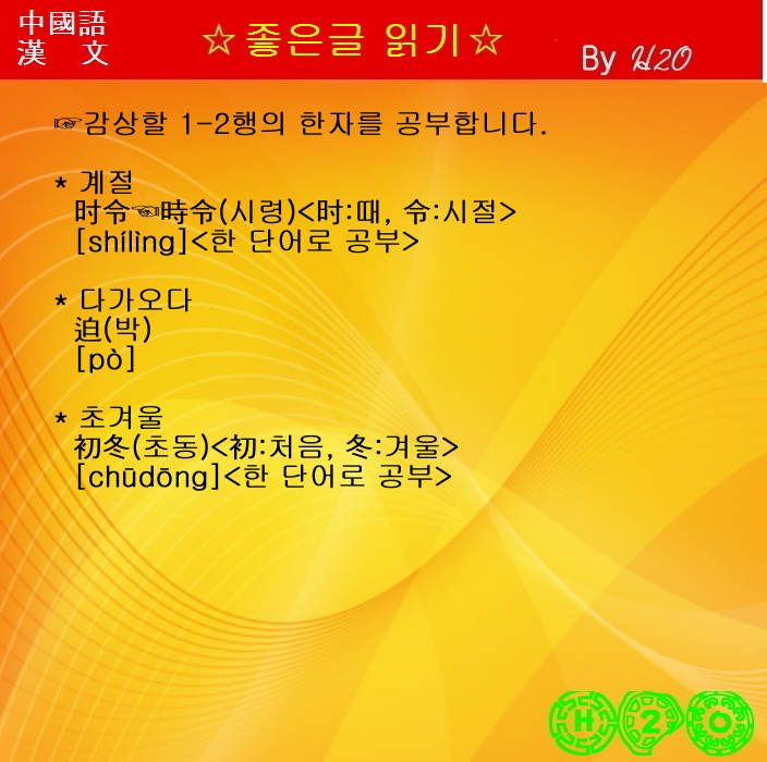 #1589강 한시(漢詩)로 배우는 漢文과 중국어 ★立冬日 - 趙泰采 - 1