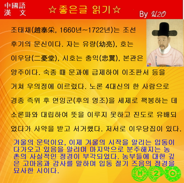 #1590강 한시(漢詩)로 배우는 漢文과 중국어 ★立冬日 - 趙泰采 - 2