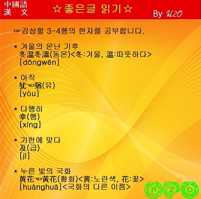 #1598강 한시(漢詩)로 배우는 漢文과 중국어 ★冬初過酉堂旅館 - 黃玹 - 2