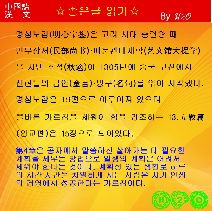 | 명문장으로 배우는 漢文과 중국어-1604 明心寶鑑 12.立敎篇 - 第4章-2 (0) | 2025.12.02 |