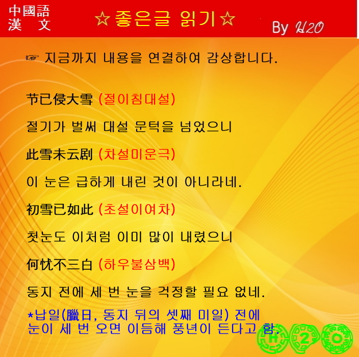 #1606강 한시(漢詩)로 배우는 漢文과 중국어 ★十一月三日 大雪 - 李奎報 - 2
